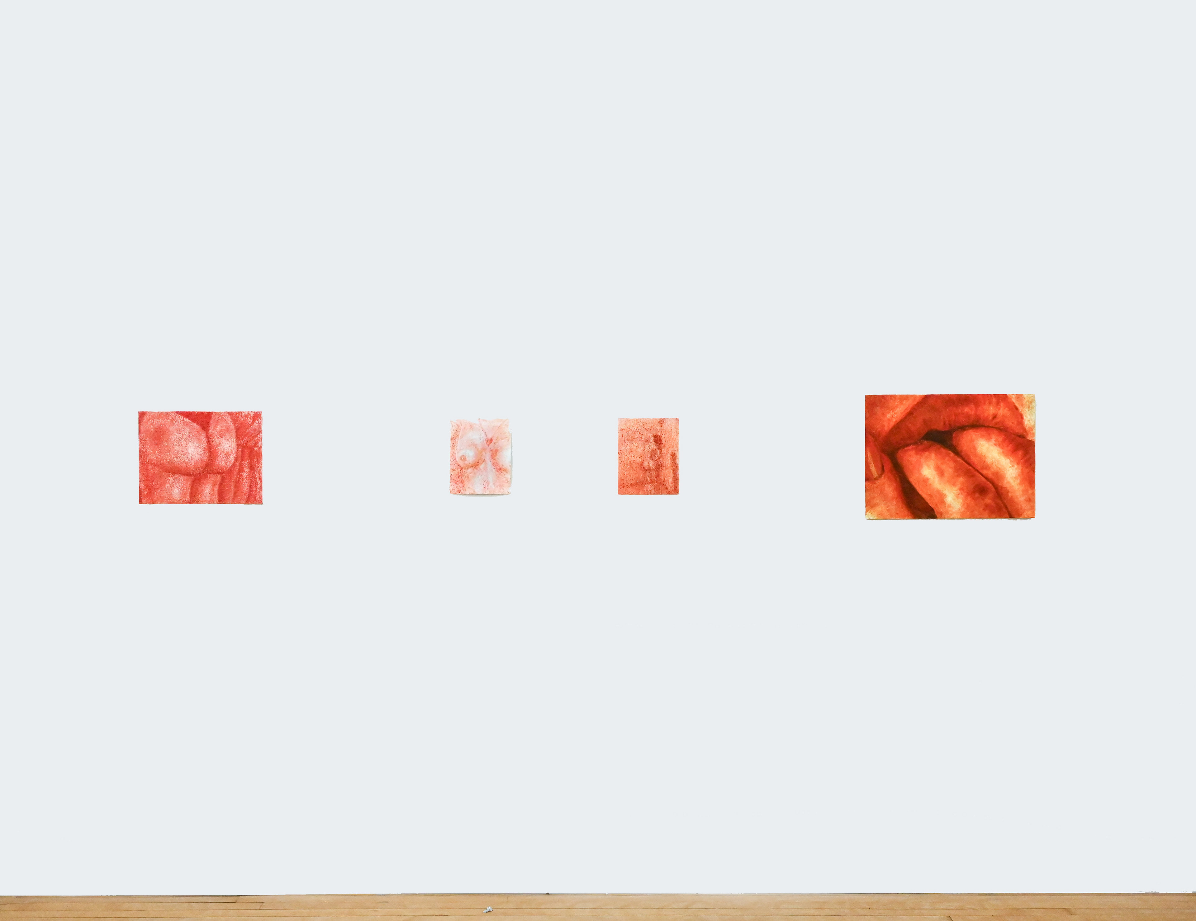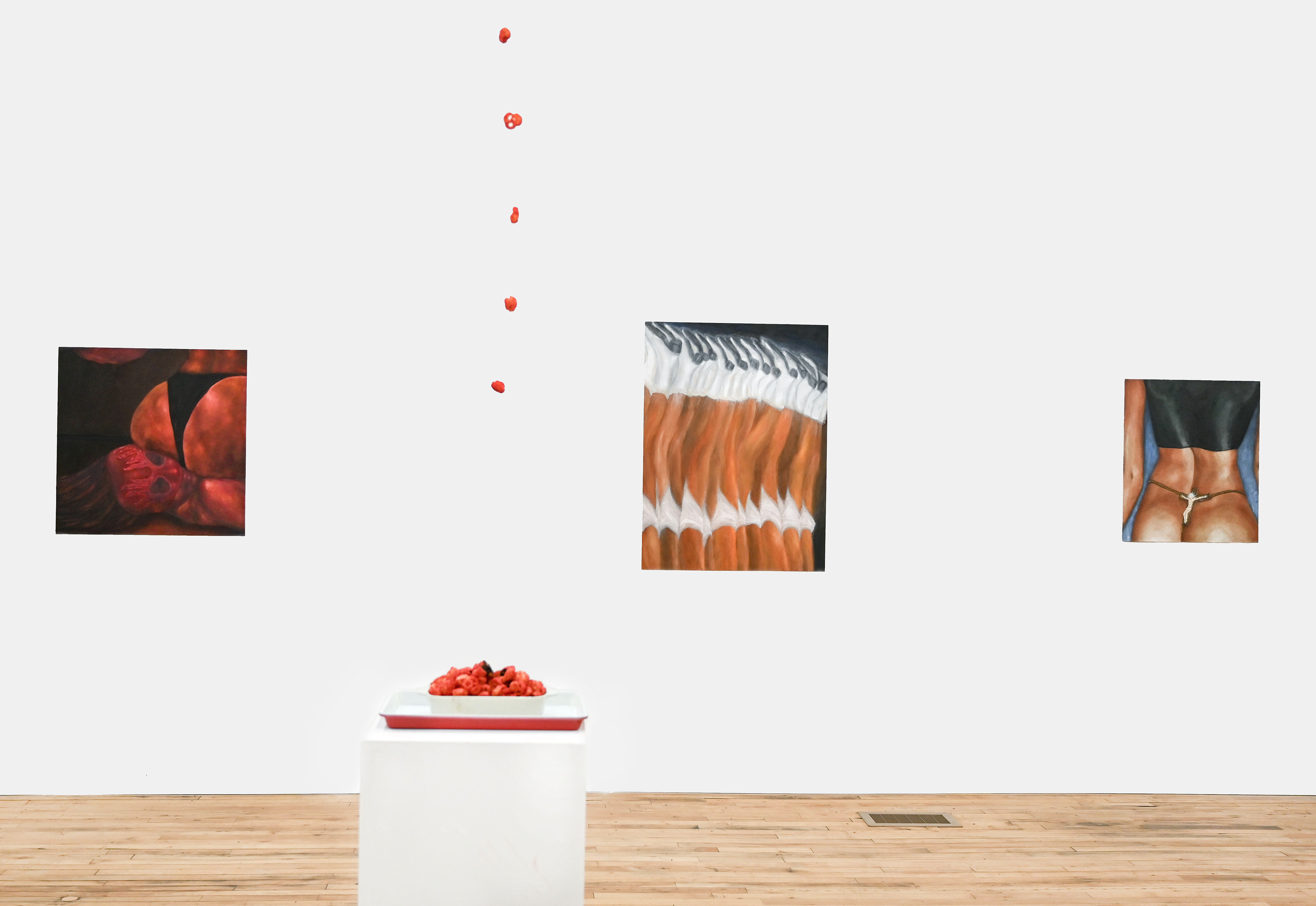 Edible Underwear, Hot Cheeto Dust (Cheetle), Hot Cheeto Makeup Palette, Hairspray and Acrylic Sealer on Canvas, 12” x 16”, 2024