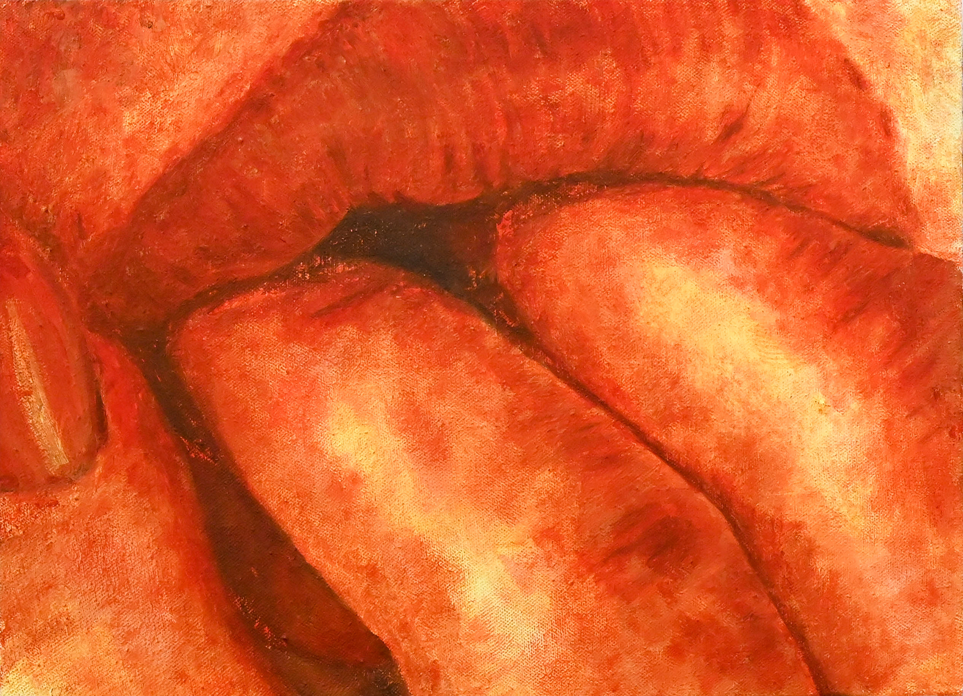 Para Chuparse Los Dedos, Oil and Hot Cheeto Dust on Canvas, 16” x 22”, 2025