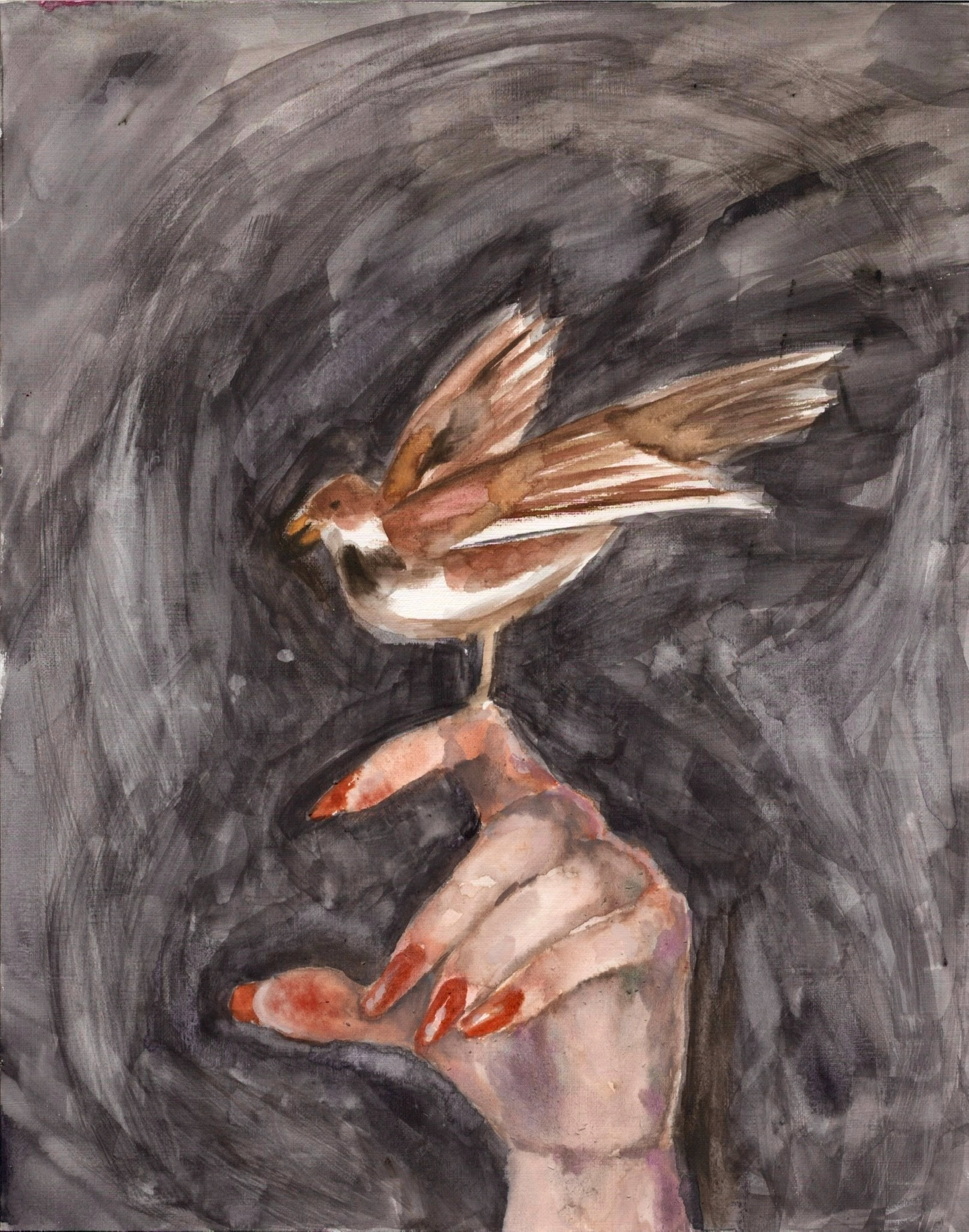Watercolor and Hot Cheetoh Dust (Cheetle) on Canvas,