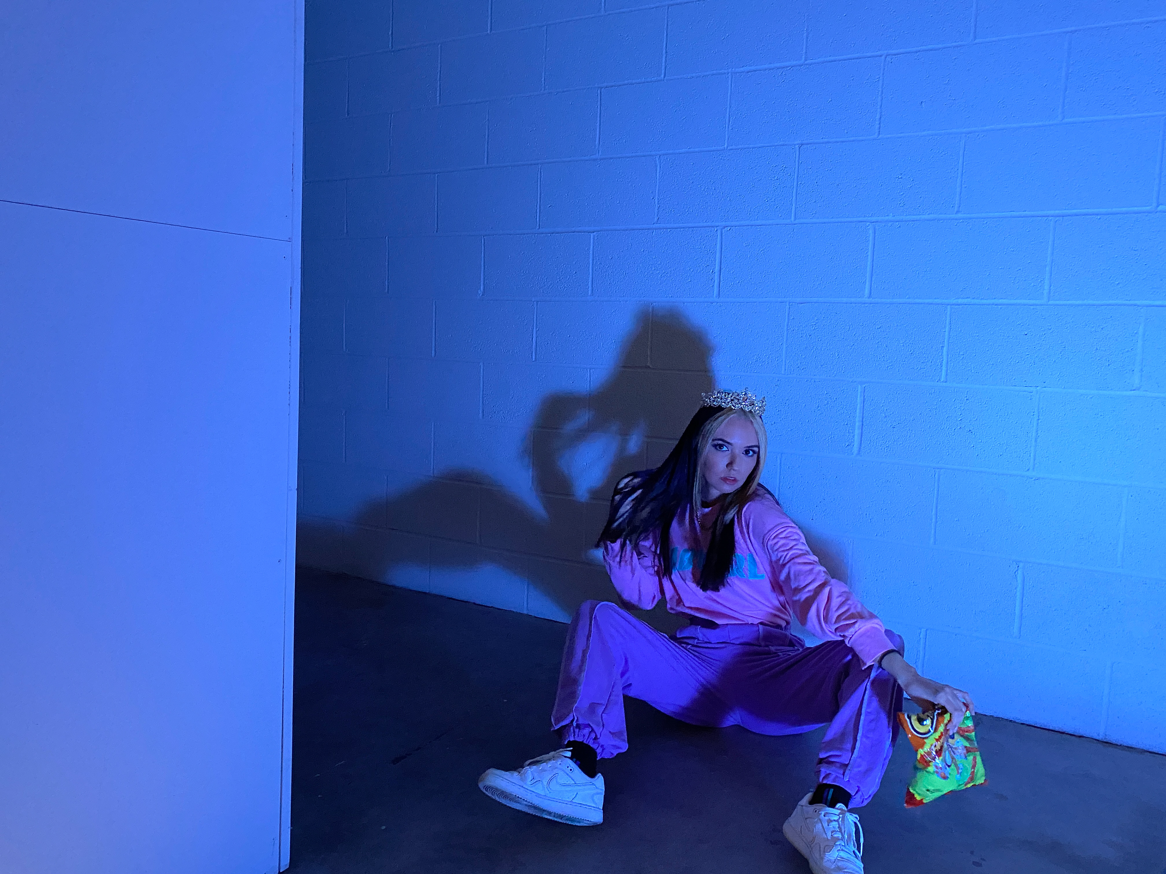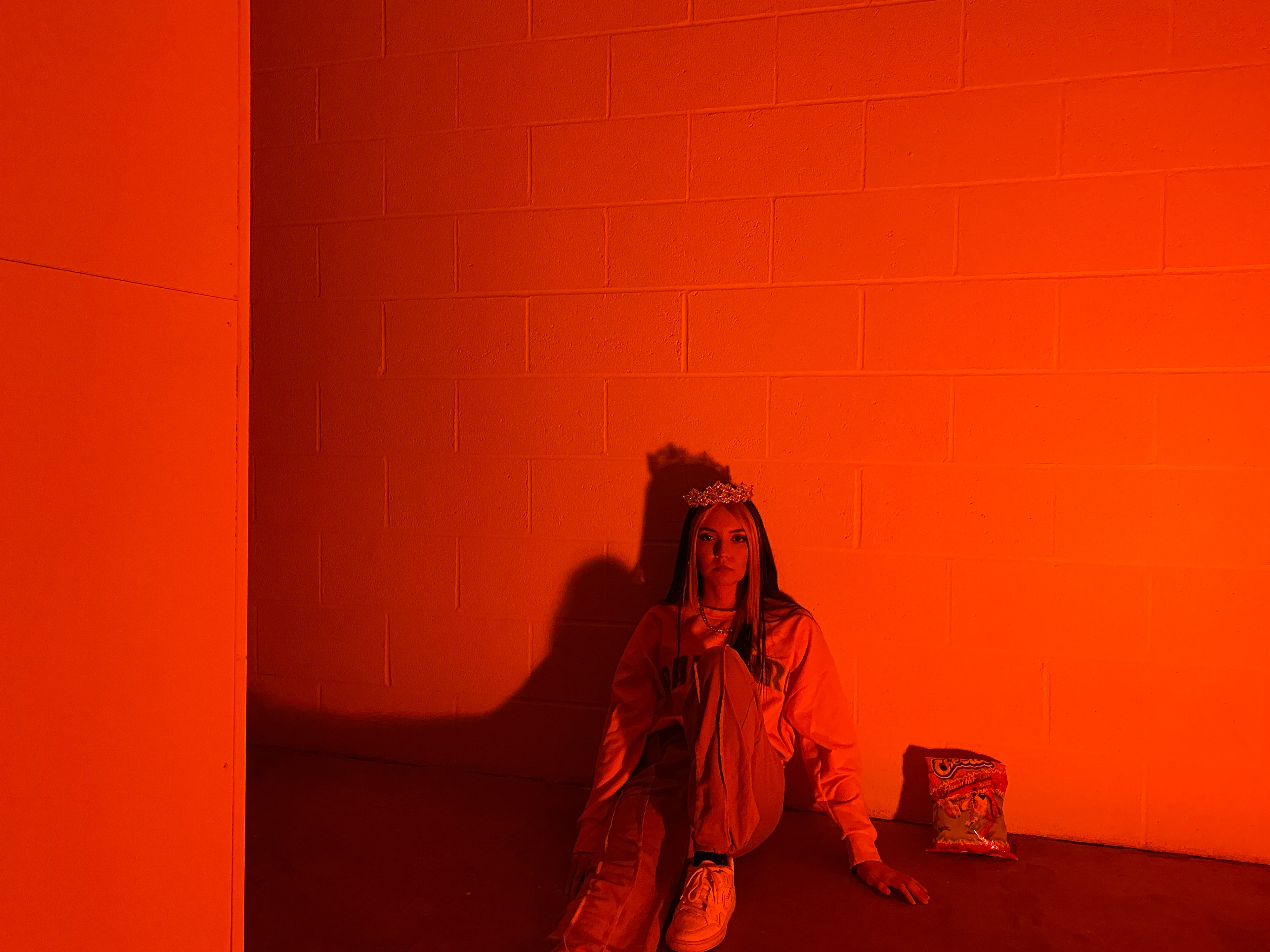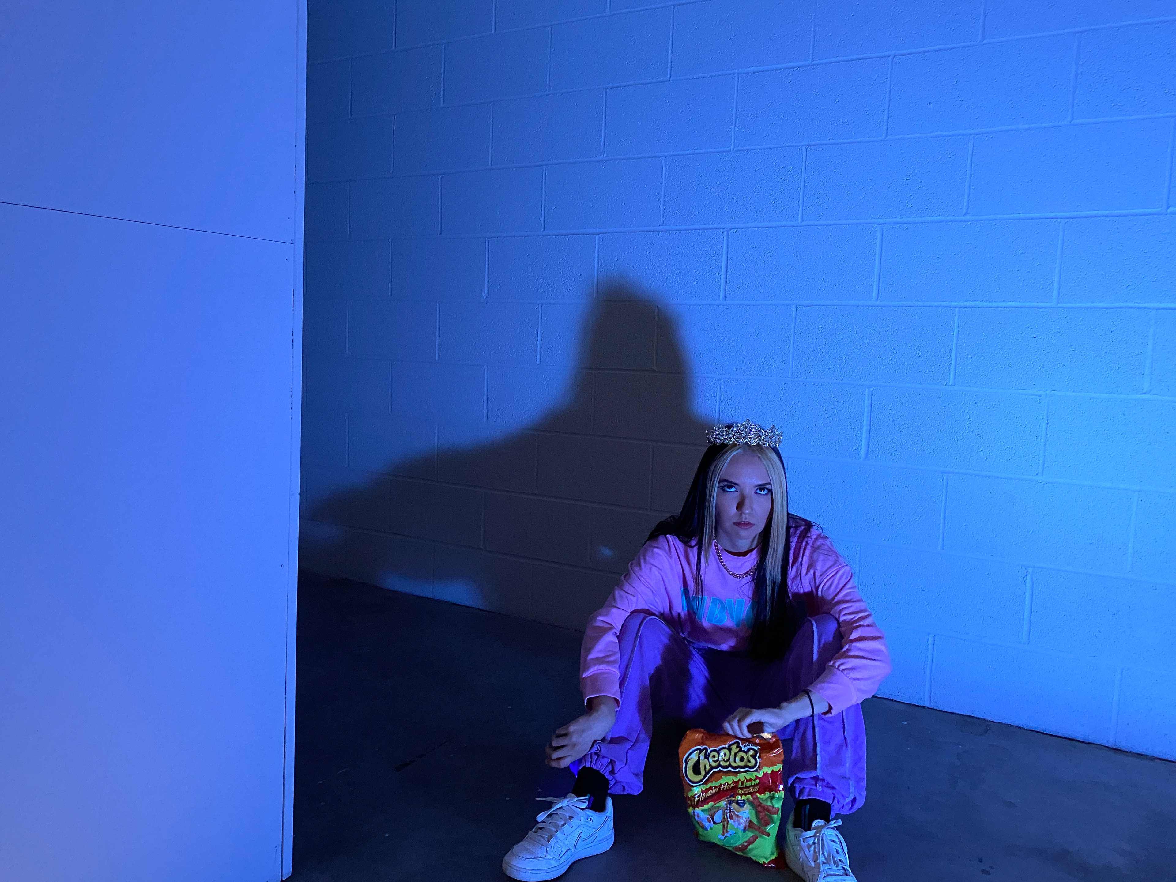 Using irony to make fun of the stereotypes of Latinas. The Hot Cheetos symbolize that all Latinas love Hot Cheetos and that they are fiery and hot. This is not always true, but I am using it to make fun of them and at the same time to empower my identity.